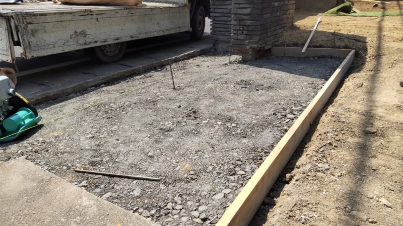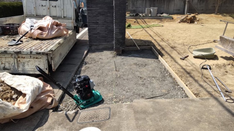 - 型枠設置、砂利敷き、転圧